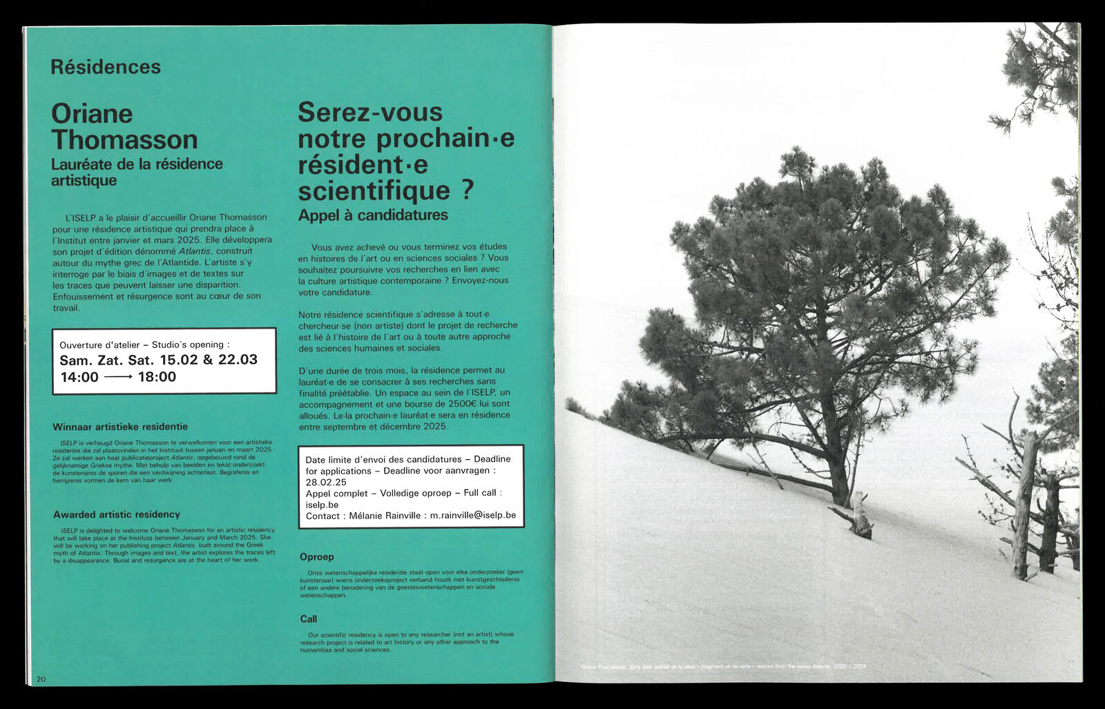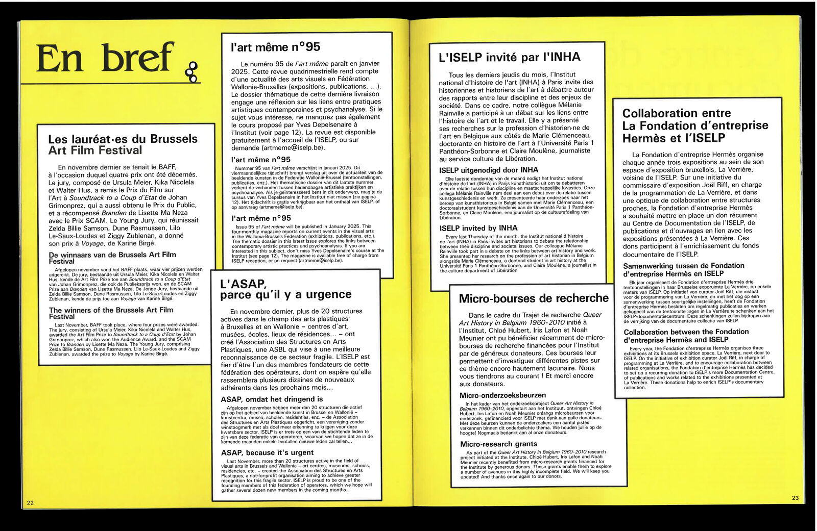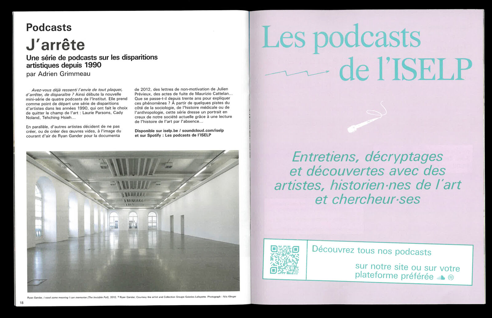 Création des revues trimestrielles de l'ISELP dans laquelle on y retrouve la programmation du lieu (expositions, évènements, résidences...)