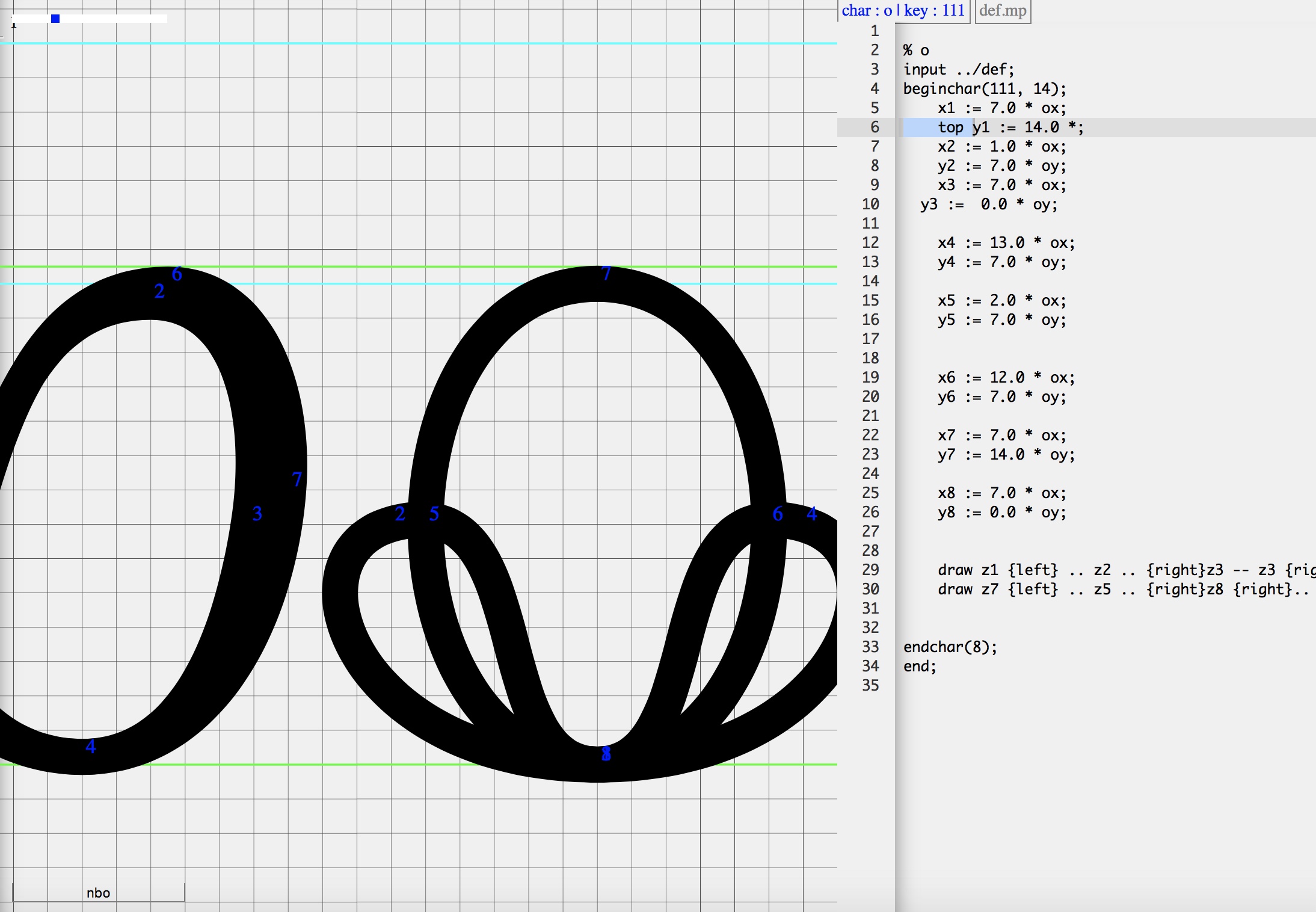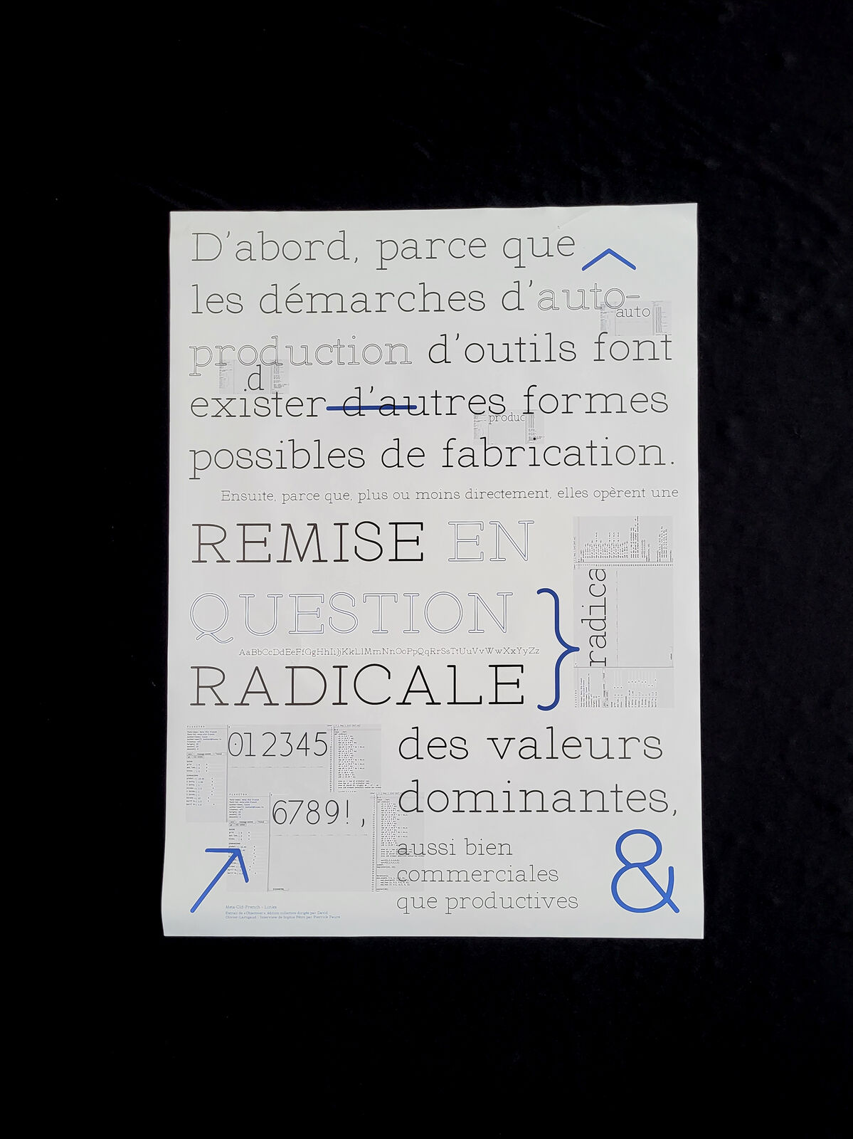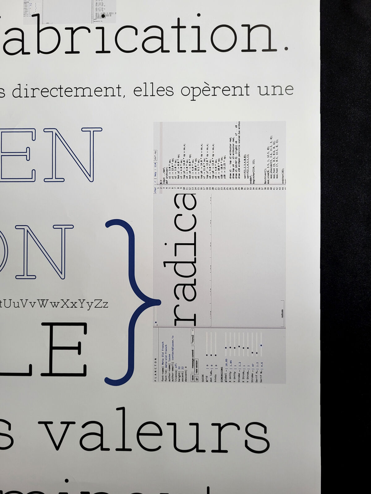 Typographies réalisées lors de mon stage chez Luuse. Ce sont des variantes inspirées du caractère Meta-Old-French regular préalablement dessiné par les designeurs de Luuse. Les version « poem » et « links » ont été dessinées sur Plancton. Outil développé par Luuse qui permet de dessiner des lettres grâce à des coordonées et non pas par les contours mais par le squelette de la lettre. Plancton utilise le langage metapost, qui dérive de metafont crée par Donald Knuth. Ce langage permet de combiner des lignes, des courbes et des points pour créer des formes, ici des lettres. Ces versions ont servis dans mon mémoire pour les sous-titres ainsi que les citations.